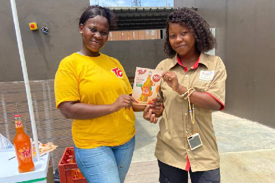 Icono indiscutible de la cartera SOEGUIBE y auténtico patrimonio gustativo de Guinea Ecuatorial, la marca Top celebra este año su 50 aniversario. Para conmemorar este medio siglo de éxitos, la marca se renueva con un nuevo diseño y un formato MA 60 más moderno para su sabor Naranja, al tiempo que garantiza la conservación de su auténtico sabor y su precio.